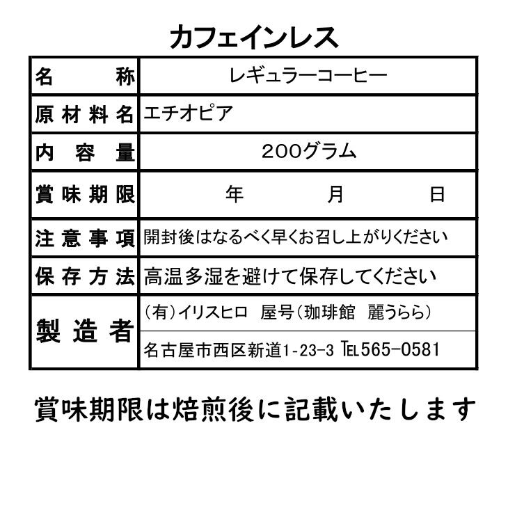 《送料無料》カフェインレス エチオピアモカ イルガチェフェ 200g 中煎り